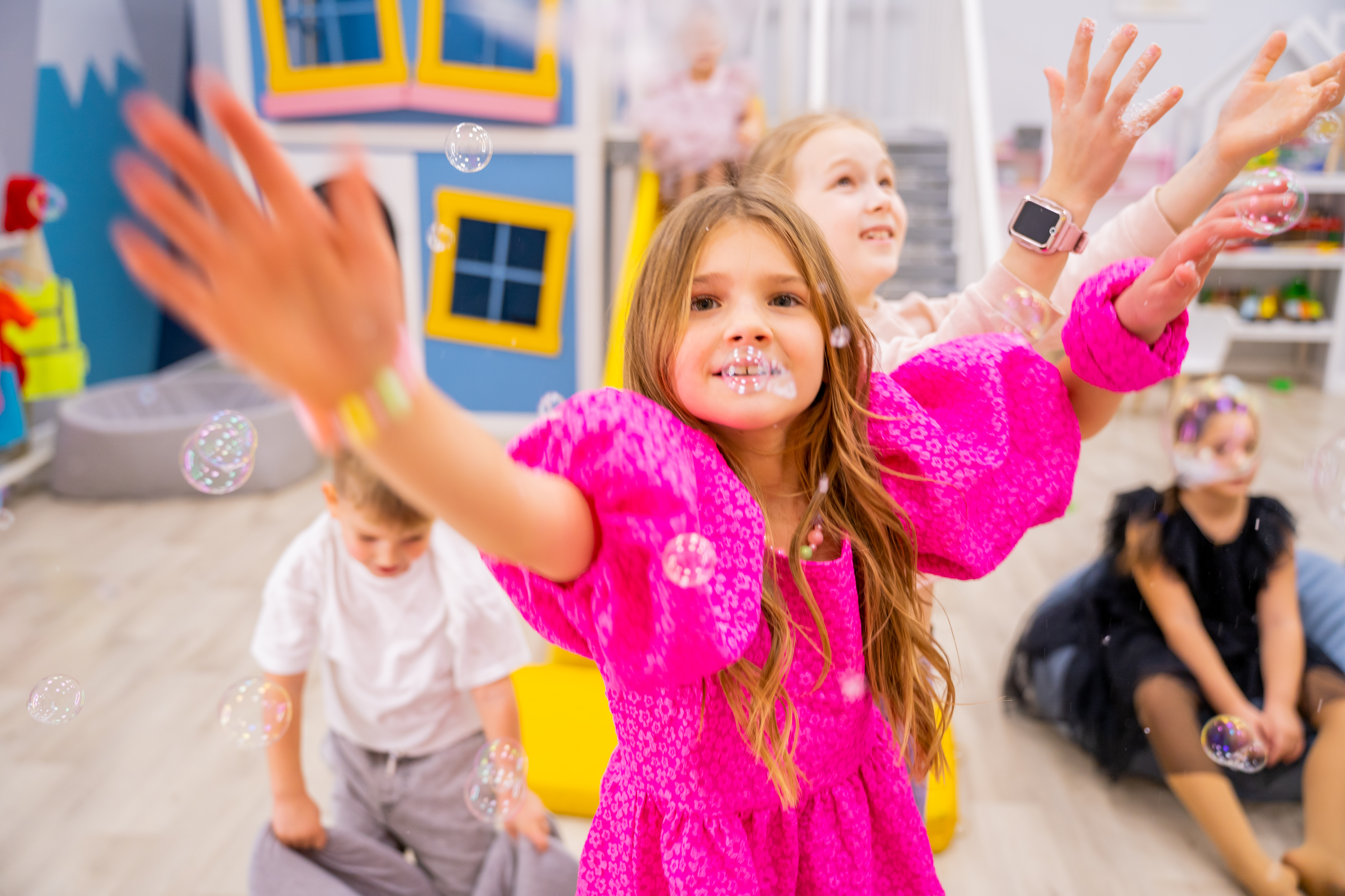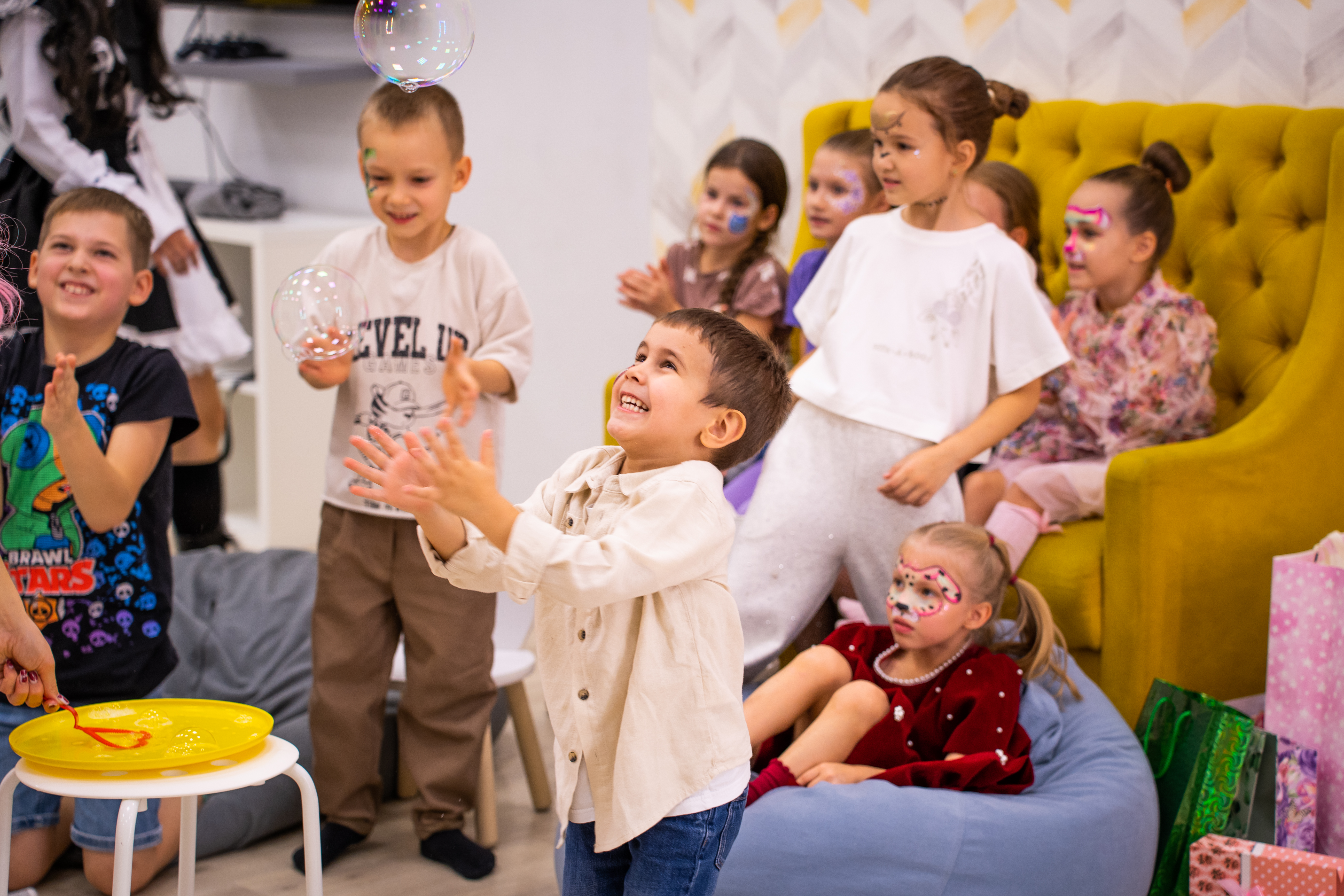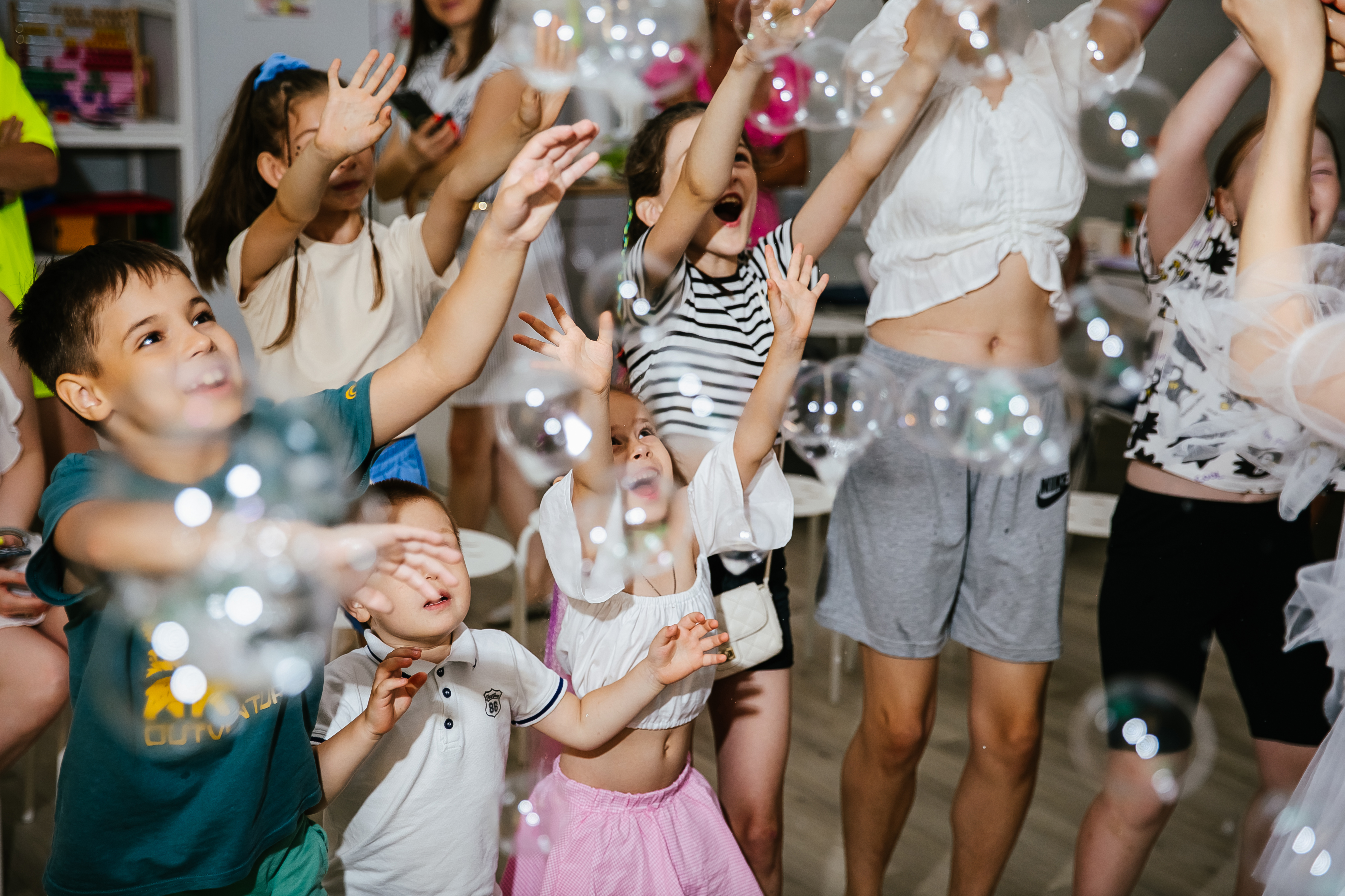 Красочная фотозона и зажигательная дискотека с генератором мыльных пузырей и диджеем